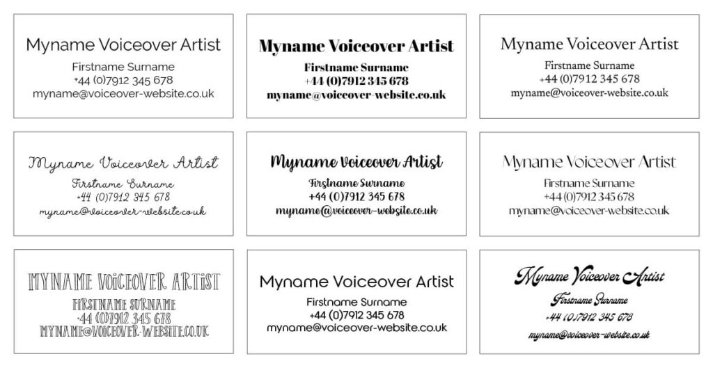 How do you feel about each of the options above? Which do you like, which don’t you like? Do you think they would be a good or bad representation of your brand values? How does each one make you feel? Are they formal or informal? Classic or modern? Dramatic or understated? And would these feelings represent your voiceover brand values?