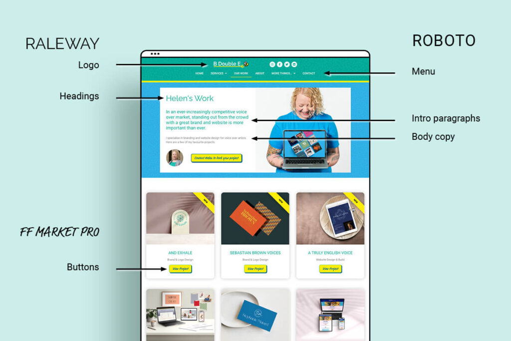 - Supporting font – possibly used in your logo alongside your main font, but mostly used for body copy on your website.