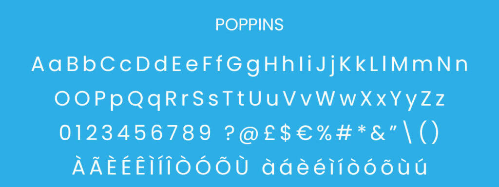 So what are we looking for? Take these two examples below – one is Raleway, one is Poppins. Initially these fonts look similar – they are both sans serif, both have wide letters, both have Latin accented letters. They also have multiple weights (bold, light, italic etc). So why choose one over the other?