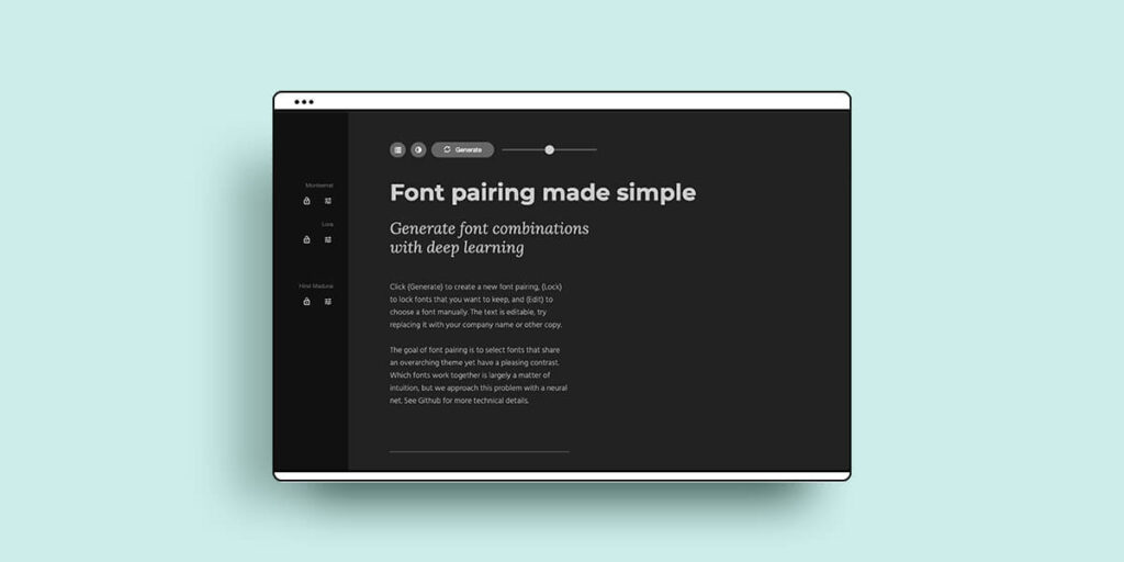If you’re looking to see how different font combinations will look on your website – Fontjoy is the site for you. A panel on the left where you can see which fonts are showing on the heading, subheading and body copy on the right. Either auto-generate different combinations by hitting the ‘generate’ button, or lock your chosen font on the left and see which other fonts will work alongside it.