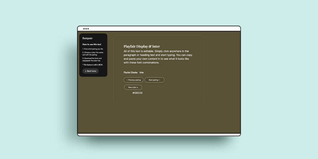 A handy site that helps you find font parings with suggested pairings and a paring generator. It also links to where you can buy the licences too so you won’t spend hours searching, find a font you love and then struggle to find where you can actually buy and download it from. You can set the background colour of the site too which is handy if you already know your brand colours.