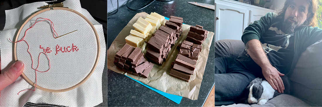 We try to have a day at the weekend that is mostly off-screen, so I’ve been cooking loads, we’ve gone for walks, sat and listened to music, brewed beer. I’ve done jigsaws, started cross-stitching and played my piano. I’ve even sorted draws, cleaned the oven and defrosted the freezer (I know!).