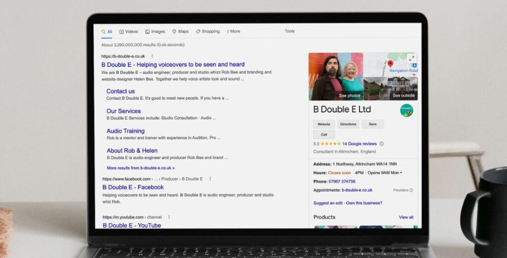 The biggest reason to get a google business profile set up and accurate is it will help you’re your website get found in search results. If you want to appear higher on google – you need to get a business profile. It’s not the only thing that will help you rank higher so check out my Beginners guide to SEO (Search Engine Optimisation) for voiceovers for more advice on that.